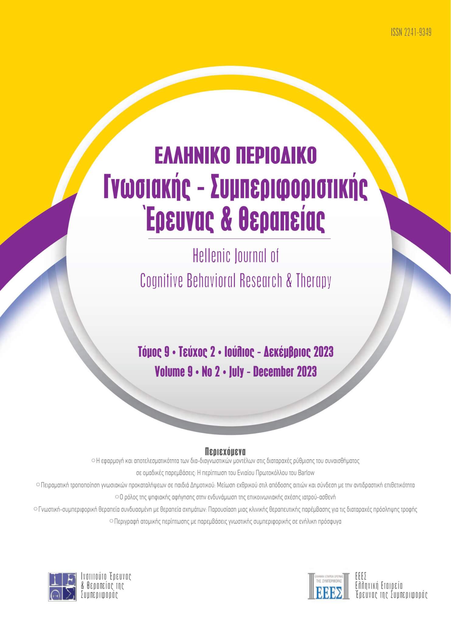 Γνωστική-συμπεριφορική θεραπεία συνδυασμένη με θεραπεία σχημάτων: Παρουσίαση μιας κλινικής θεραπευτικής παρέμβασης για τις διαταραχές πρόσληψης τροφής – Χάιντς Ε., Πασαλίδου Χ. (σελίδα 35)